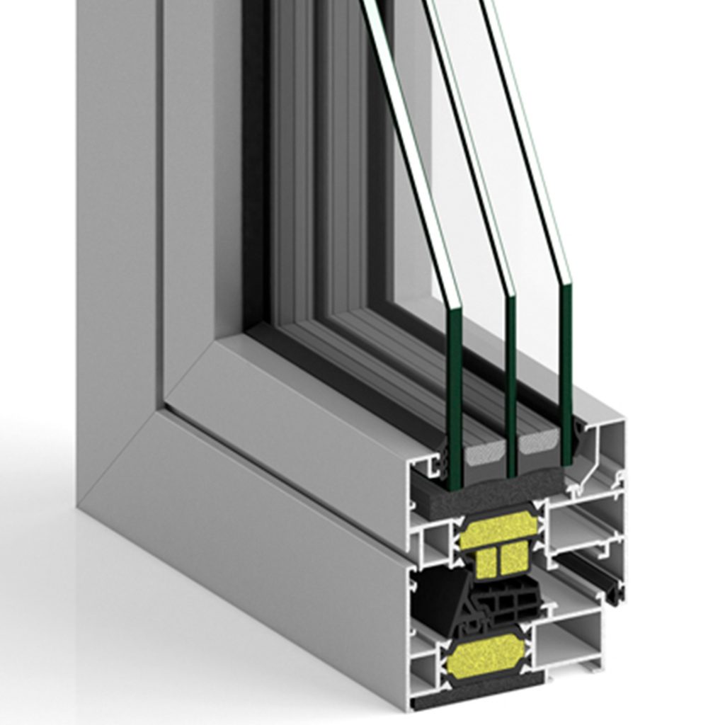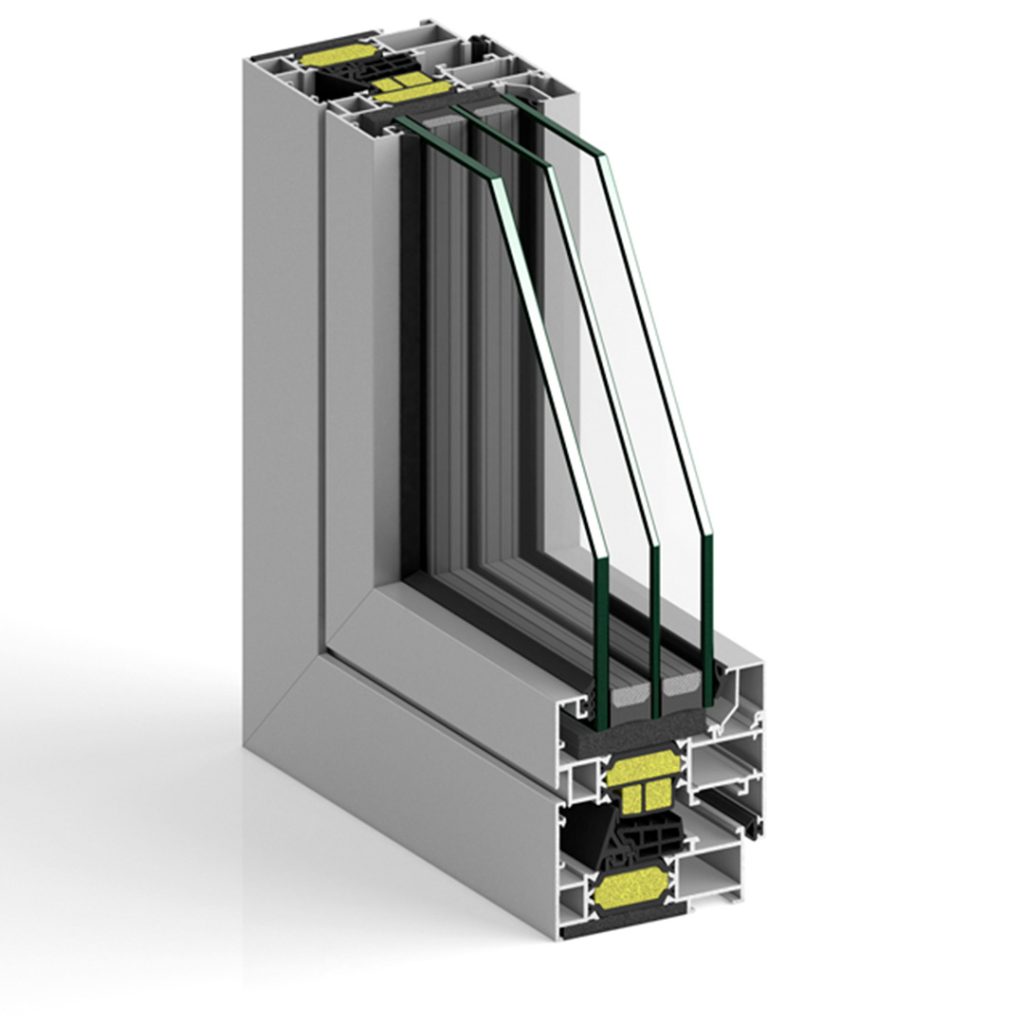 Sistema de ventanas y puertasde líneas rectas con un marco de 74 mm apto para las zonas climáticas más exigentes. Con posibilidad estética con hojas vistas, ocultas o minimalistas. Disponible en canal europeo y