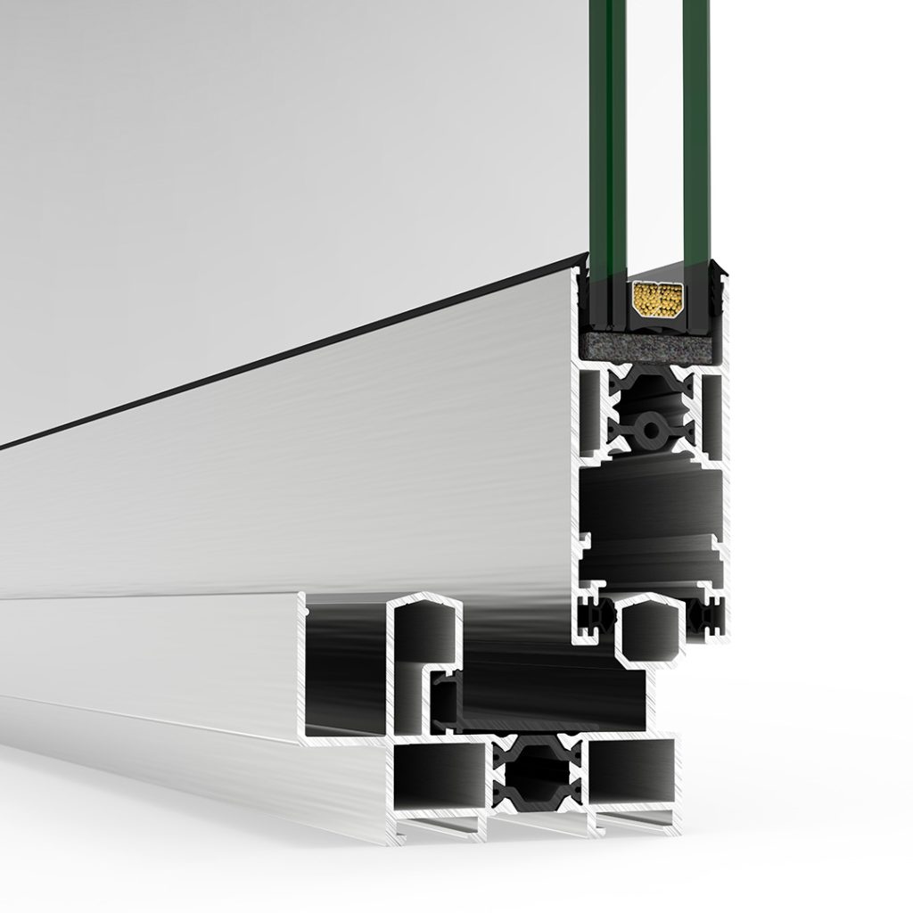 Sistema de corredera en línea de gran versartilidad con estética recta o curva, hojas a testa o perimetrales y diversos marcos adecuados a las diferentes configuraciones. En su versión de hojas rectas y a testa permite una apertura integral del hueco con la solución GALANDAGE, ocultando totalmente las hojas en la cámara del muro de obra. Además, está versión permite integrar sobre el mismo marco el sistema Tamiz de protección solar.